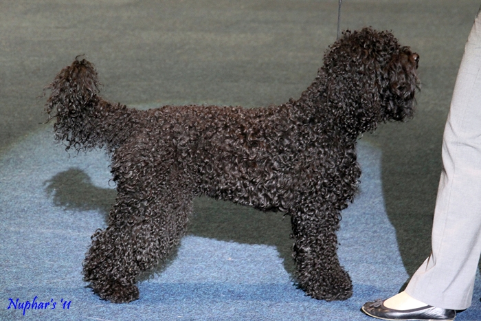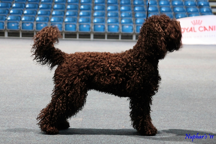 De opmerking dat ze haar staart wat hoog draagt, is overigens ook volledig terrecht. Maar we zien liever een goed aangezette maar uit enthousiasme wat hoog gedragen staart dan de echt foute gekrulde staarten die we bij de Barbet steeds vaker zien of de ladingen honden in de ring die hun staart laten hangen omdat ze er niets aan vinden.