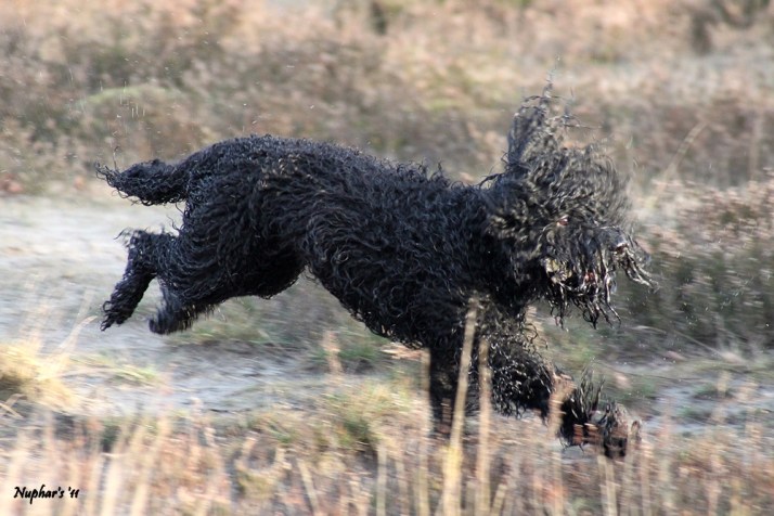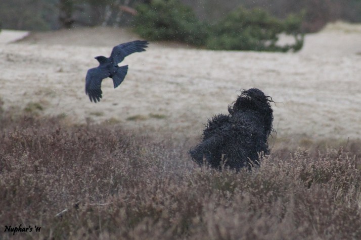 Alba was vandaag een beetje maf, dat is ze al een week of wat en volgens ons ligt het aan de temperatuur die daalt. Vandaag moesten de kraaien het ontgelden, meestal negeert ze ze volkomen maar nu moesten ze vliegen! Het leek ook wel alsof ze haar een beetje aan het plagen waren, ze bleven heel laag vliegen.