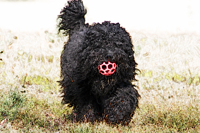 Dan hebben we nog het G-gen, wat staat voor ‘Greying’ ofwel vergrijzend. Het is een dominant gen wat zorgt dat honden over hun hele lijf grijzer worden naarmate ze ouder worden. Het heeft niet te maken met het grijs van ouder worden. De gepigmenteerde haren worden vervangen voor ongepigmenteerde haren. Voor zover ik weet heeft dit bij de Barbet invloed op de bruine vachten, maar niet op de zwarte. Hoe dat werkt, weet ik niet.