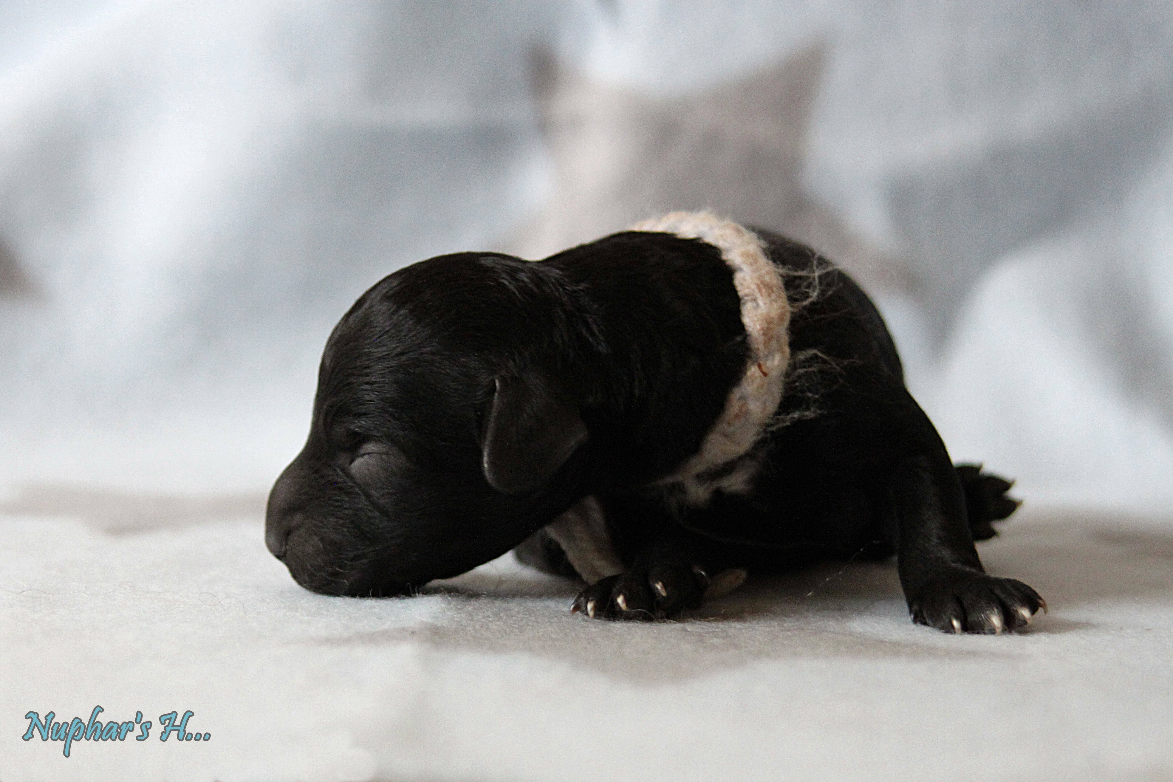 Hier zijn ze dan, de 8 pups van Alba! Hun stamboomnamen zullen oplopend het alfabet doorgaan, op volgorde van de geboorte, dus voor dit nestje van A tot H. Veel fokkers kiezen voor een letter per nestje, maar ik denk niet dat wij 26 nestjes gaan fokken in ons leven. Wie weet zullen we wel 26 pupjes fokken en komen we misschien nog eens bij de Z ;).