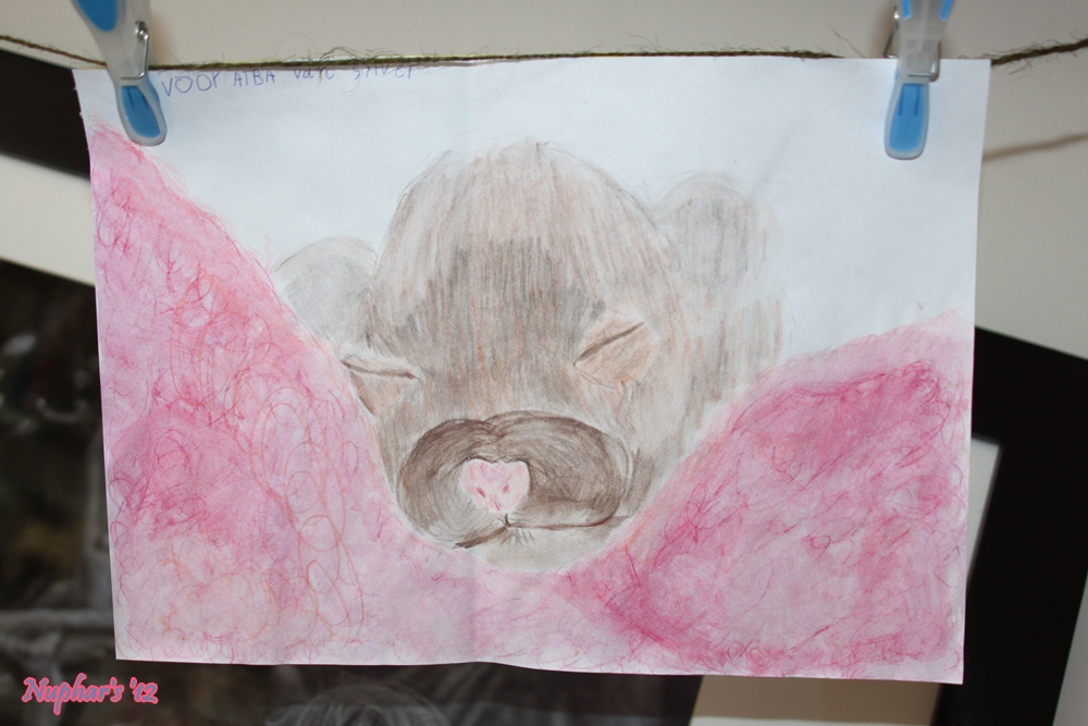 Alba heeft haar, ondanks zelf een beetje een baaldagje (waarschijnlijk doordat de melk van samenstelling veranderd, vertellen zeer ervaren fokkers me), goed verzorgd.