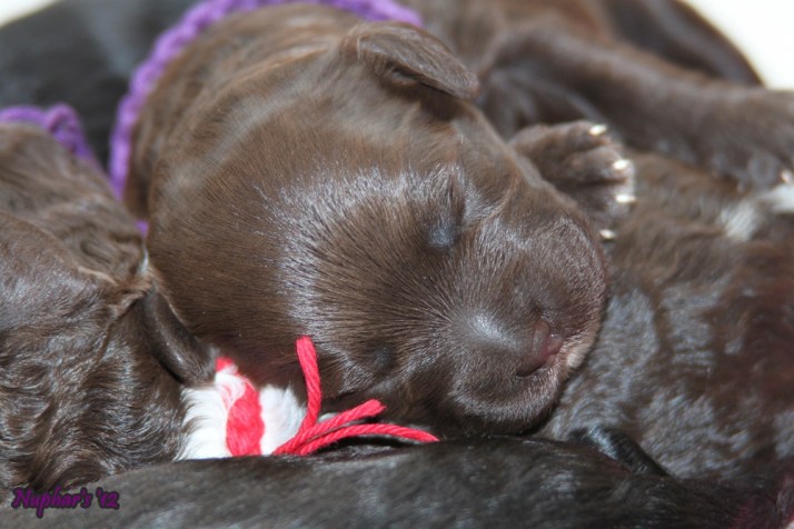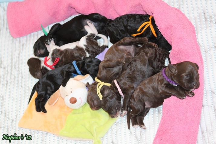 We hebben even een baaldag in Huize Nuphar’s. Pupje Geel was vandaag wat ‘zeurderig’, ze heeft regelmatig bij Wouter gelegen en sliep dan wel wat beter dan in de kist bij de rest.