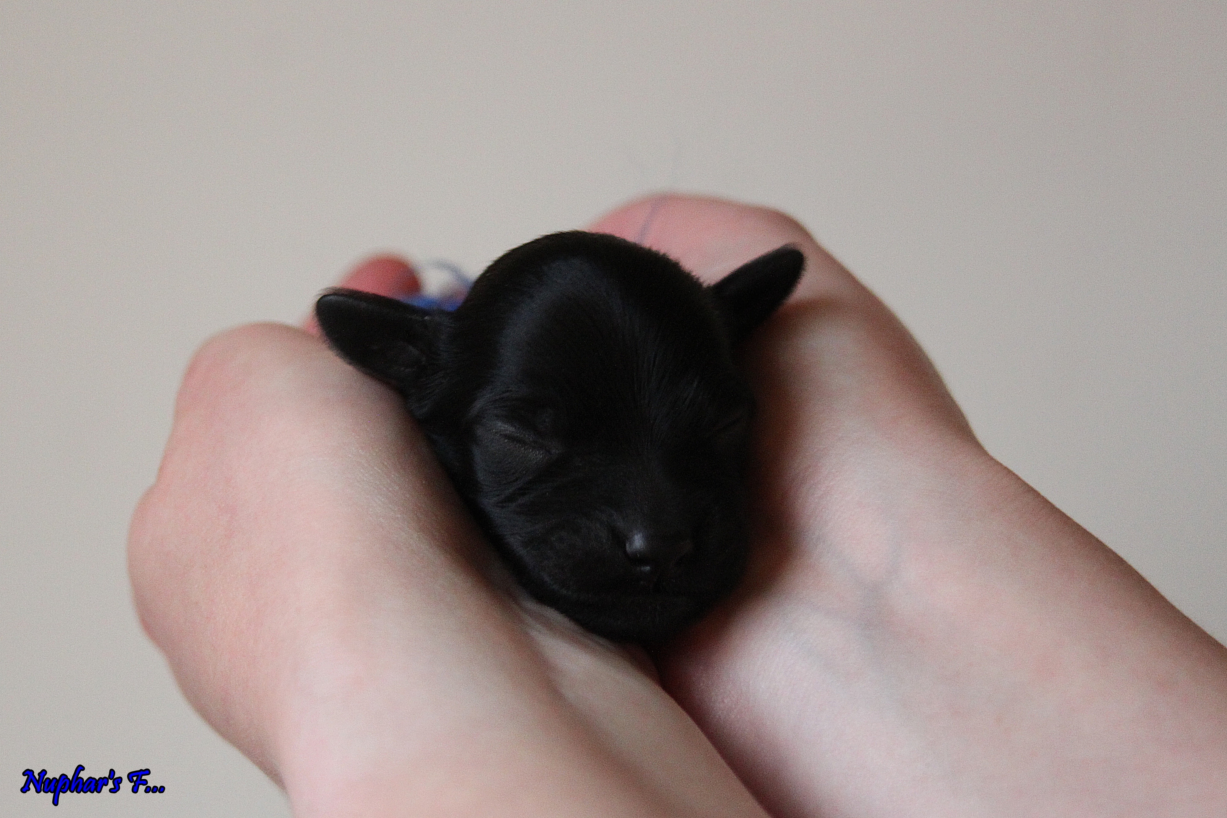 ’s Middags werd haar rechteroogje ineens dik. Dat is natuurlijk helemaal niet de bedoeling bij puppenoogjes, zeker niet als ze nog niet open zijn! Er kwam wat troep uit, wat op zich een goed teken is dat het eruit kan.