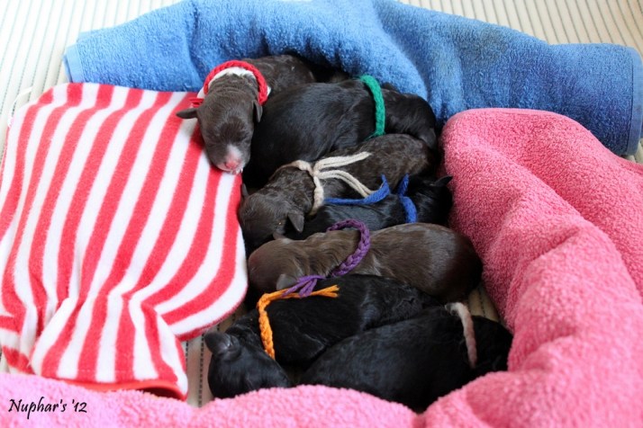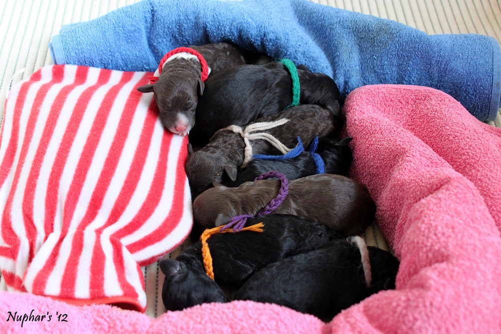 We hadden op de website al neergezet dat alle pupjes van dit nest gereserveerd zijn voor nieuwe eigenaren. We hadden veel meer mensen op de lijst dan pupjes. Een goede fokker gaat niet fokken zonder een lijst te hebben, of althans: dat vinden wij. Het mooiste is als alle pupjes al bij de geboorte gereserveerd zijn.