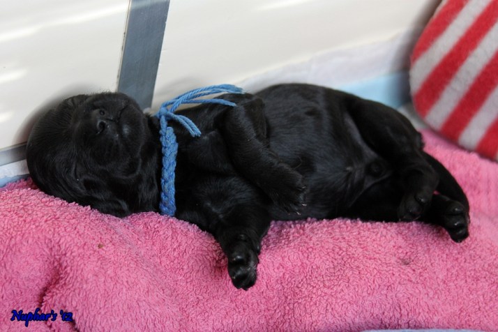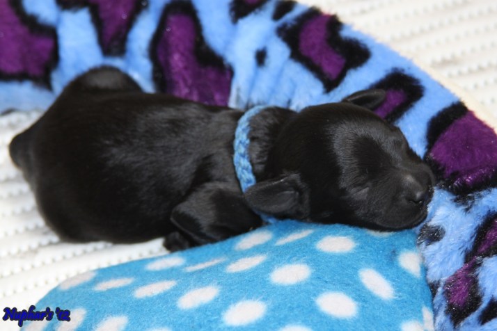 Vandaag is de tweede pup liefdevol thuis ontvangen door zijn nieuwe eigenaren. Thibault (N. Four Leaf Clover) was ons kleinste pupje, maar 148 gram bij de geboorte. Inmiddels is het een stevige vent van ruim 5,5 kilo waar je absoluut niet meer van zou zeggen dat hij zo klein was.