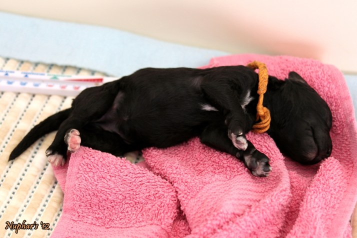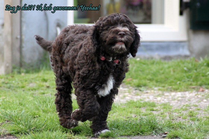 Nessa heeft het allemaal glansrijk doorstaan: haar benchje was op een enkel plasje na nog schoon, ze had zelfs nog water en ze vertoonde geen enkel teken van stress. Good Girl!