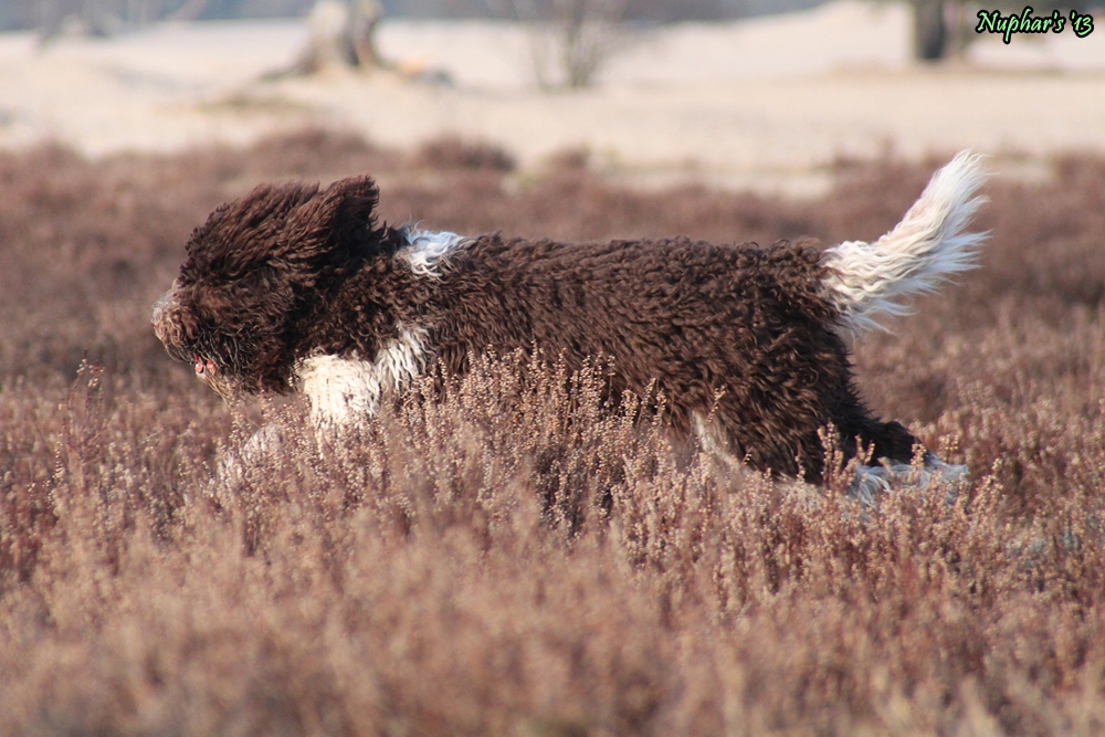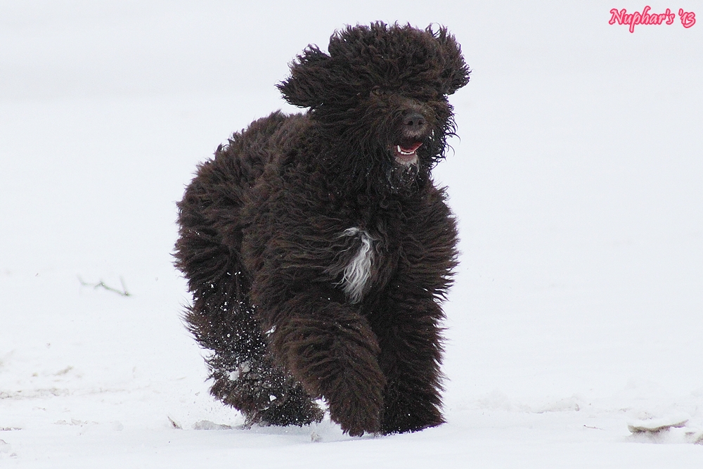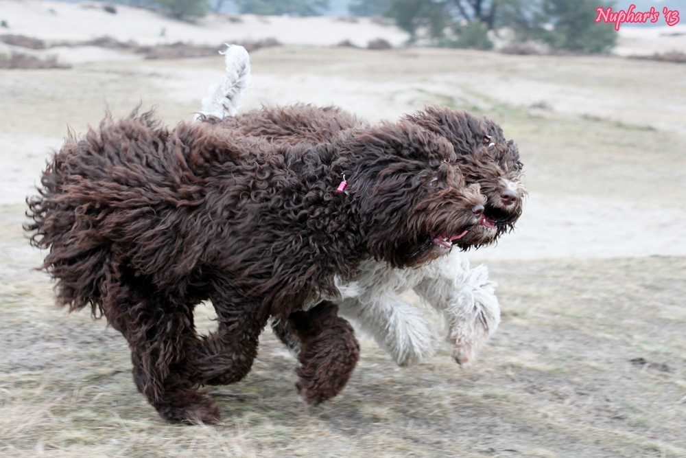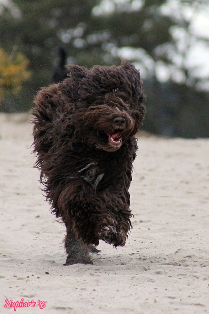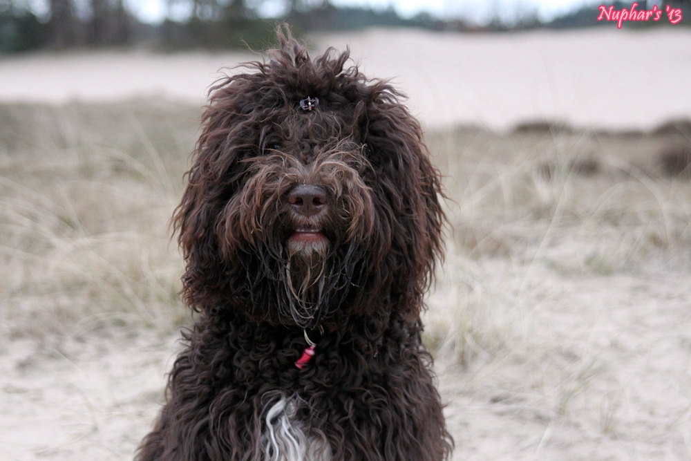 Dolce was erna aan de beurt, in een Jeugdklasse van 3 teefjes waarvan Dolce met 9,5 maand ruim de jongste was. Ook Dolce was heel braaf, ze vond de koekjes wel lekker. De keurmeester was erg te spreken over haar vacht en gaf nog een extra aai na het betasten met de opmerking ‘lekker he, die krullen!’.