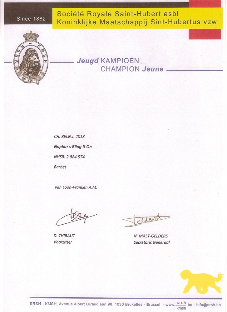 Norah (Nuphar’s Bling It On) heeft het Belgisch Jeugdkampioenschap behaald. Zij is de eerste Barbet die deze titel behaald!