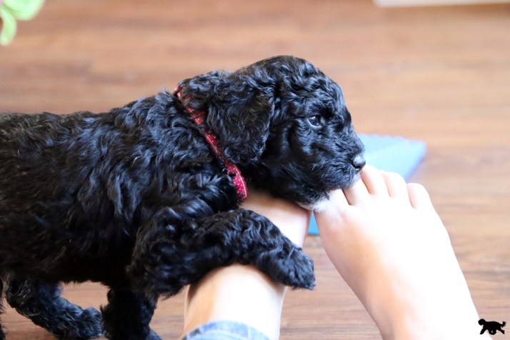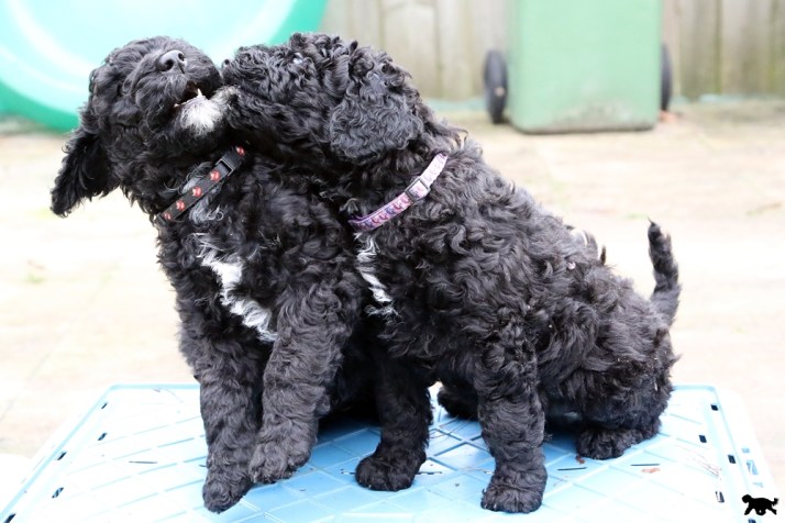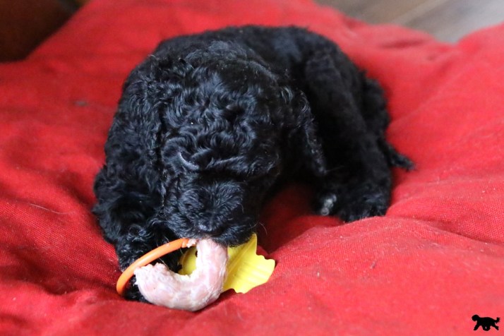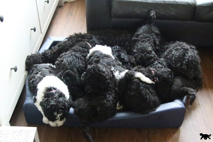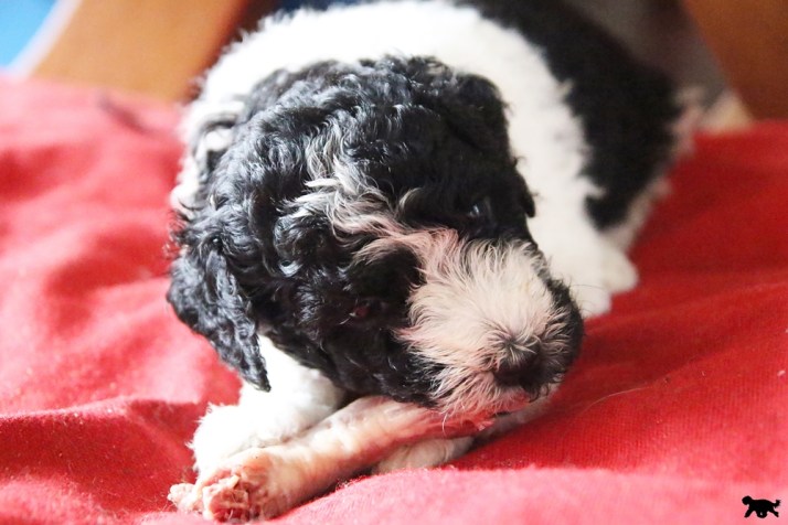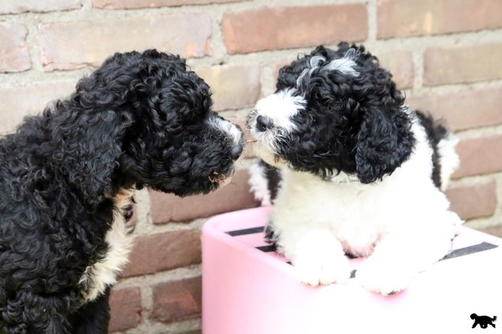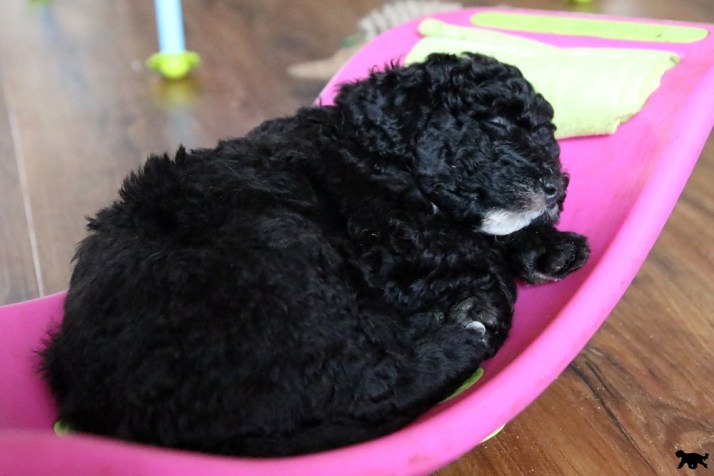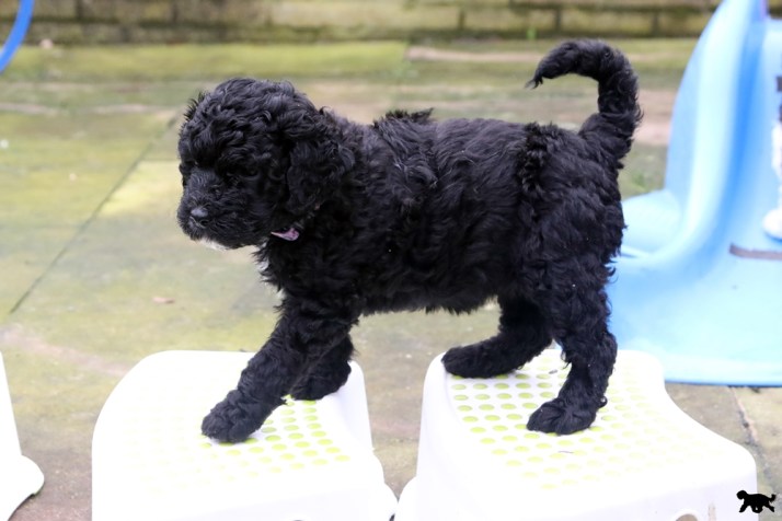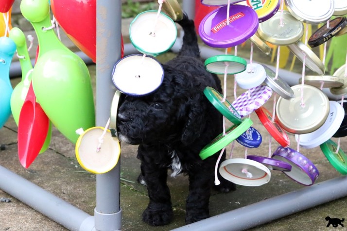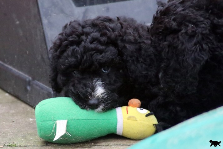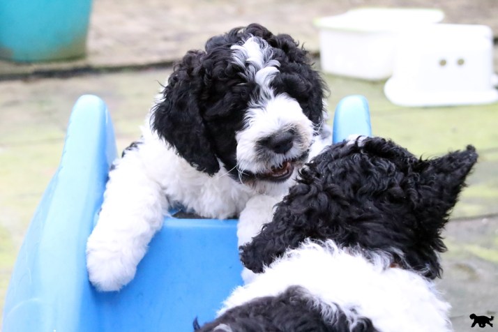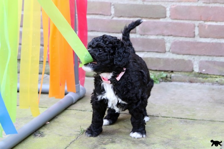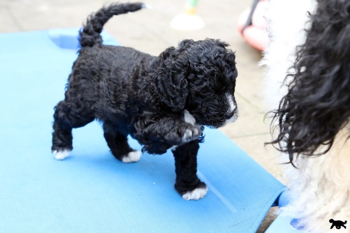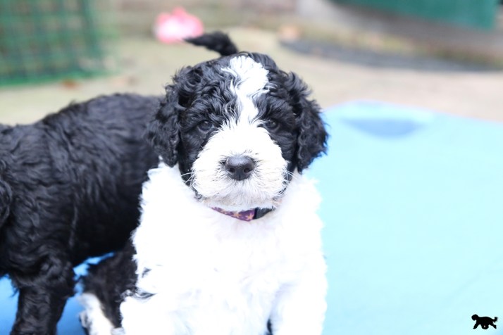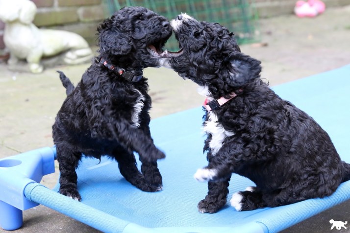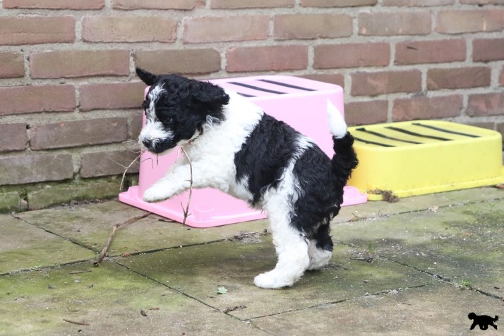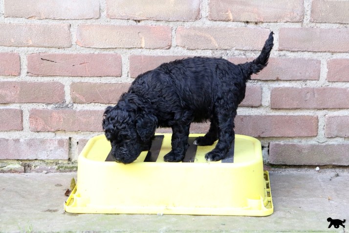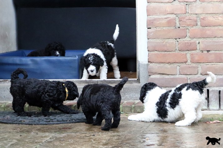 Op 5 maart zijn de pups naar Hondenschool My Best Friend geweest om daar op het gras te spelen. Ze hebben, na hun eerste autoritje, ook kennis gemaakt met een boel nieuwe geuren en andere diersoorten, aangezien deze hondenschool op een zorgboerderij gevestigd is. Het volledig afgezette grasveld wordt alleen gebruikt voor lessen, door honden die ingeent zijn, dus het is een veilige omgeving voor een eerste uitje.