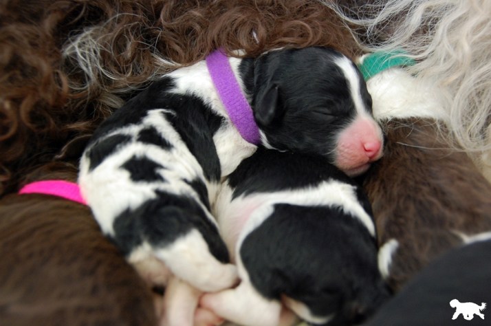 Cait’s 5 broers werden allemaal vóór haar geboren. Toen er, na een pauze van bijna 2 uur, eindelijk een teefje geboren werd, konden we ons geluk niet op. Later volgde nog een teefje.