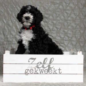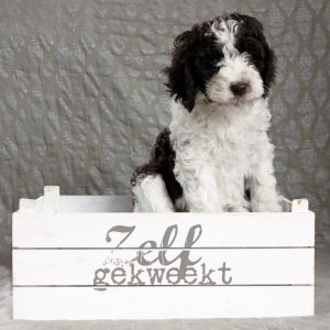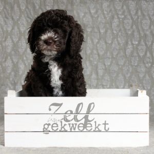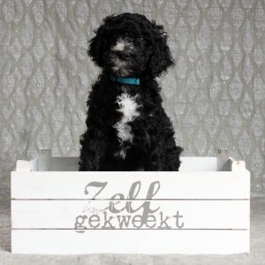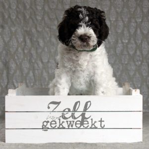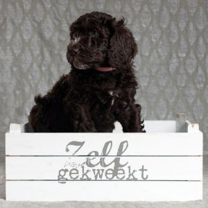 Emil’s owners keep his coat short but he has a nice curly coat which isn’t overly wooly. He is 60 cm. He is a social boy who gets along with most other dogs and he is used to being around small children. Inside he is calm, outside he loves to run, swim and use his nose for search games.