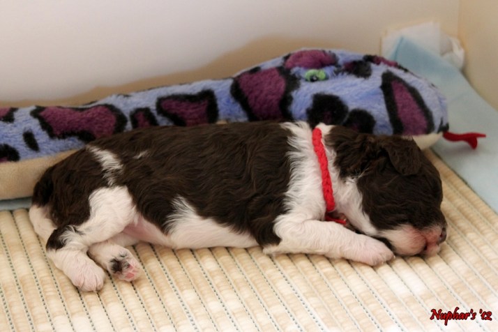 Lotus is geboren als vierde puppy in het nest. Meer informatie over het nest vind je hier.