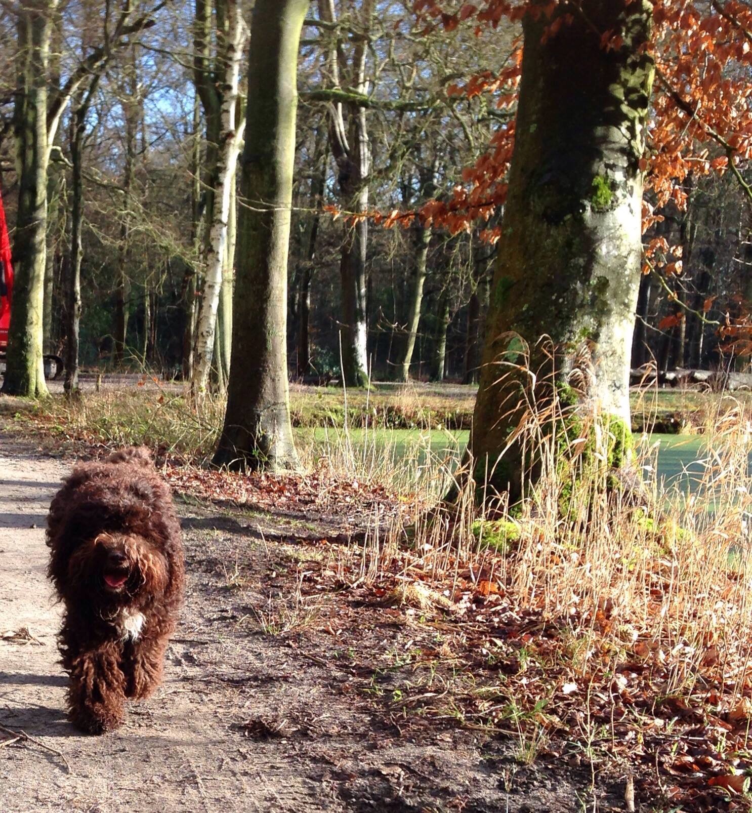 Ze is een paar dagen ’s morgens wat misselijk geweest, maar voelt zich inmiddels alweer helemaal goed. Nu de loopsheid bijna ten einde is, kan ze ook weer lekker loslopen in het bos.