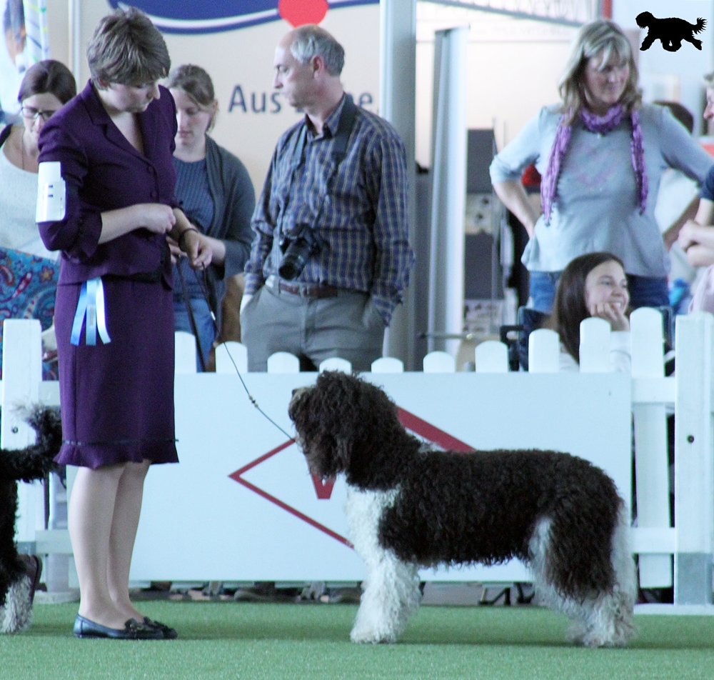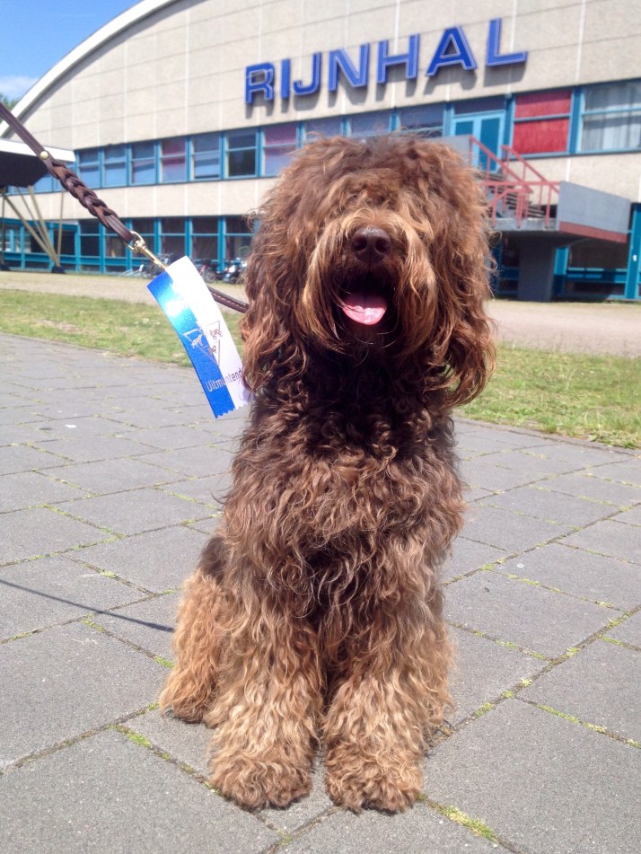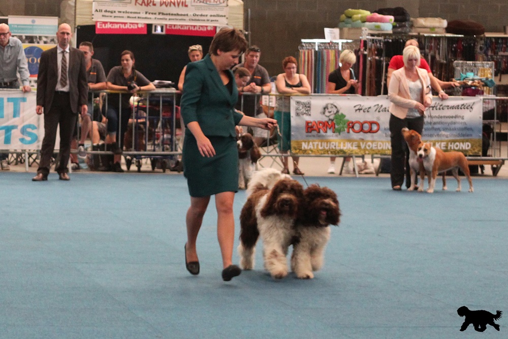 De keuring begon om 9 uur al. De 6 ingeschreven Barbets werden gekeurd door mevrouw T. Urek (SL). Zij nam de tijd en heeft veel aandacht besteed aan alle honden. Uiteindelijk stonden we met dezelfde line-up voor BOB als de dag ervoor – weer werd Cait BOB en Mr. Bond BOS.