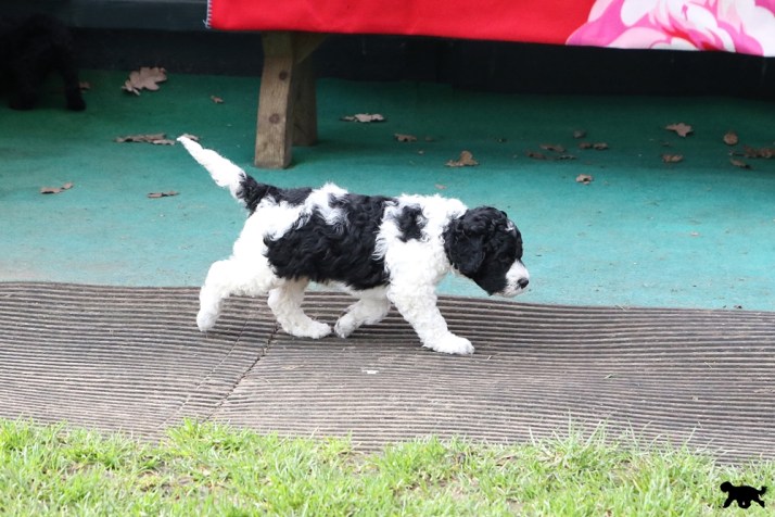 Op 5 maart zijn de pups naar Hondenschool My Best Friend geweest om daar op het gras te spelen. Ze hebben, na hun eerste autoritje, ook kennis gemaakt met een boel nieuwe geuren en andere diersoorten, aangezien deze hondenschool op een zorgboerderij gevestigd is. Het volledig afgezette grasveld wordt alleen gebruikt voor lessen, door honden die ingeent zijn, dus het is een veilige omgeving voor een eerste uitje.