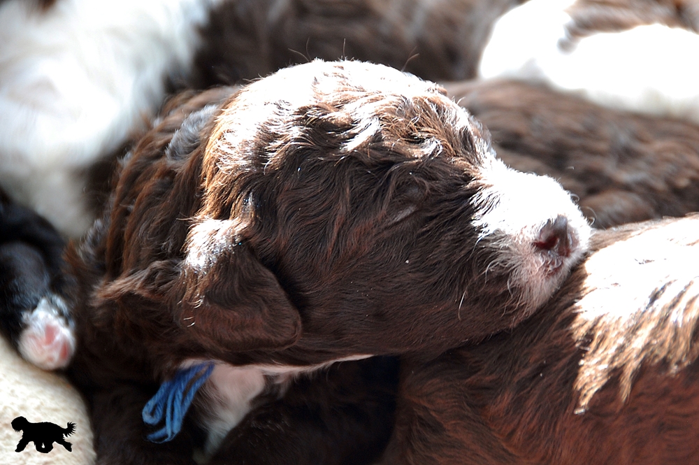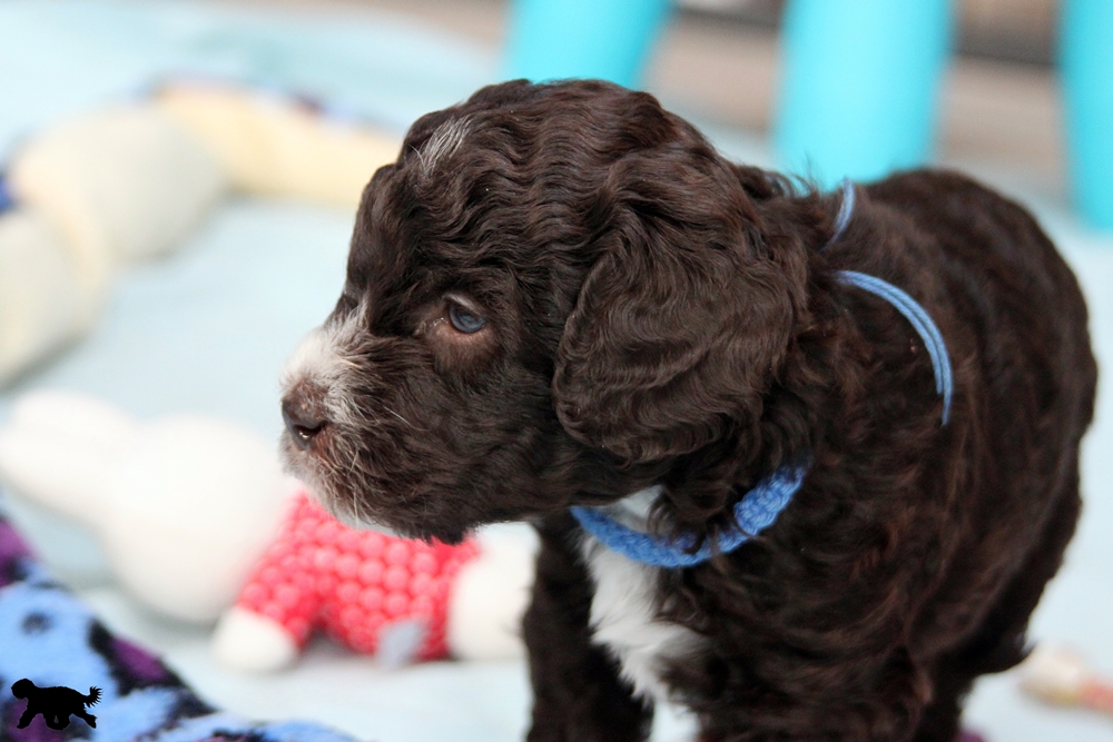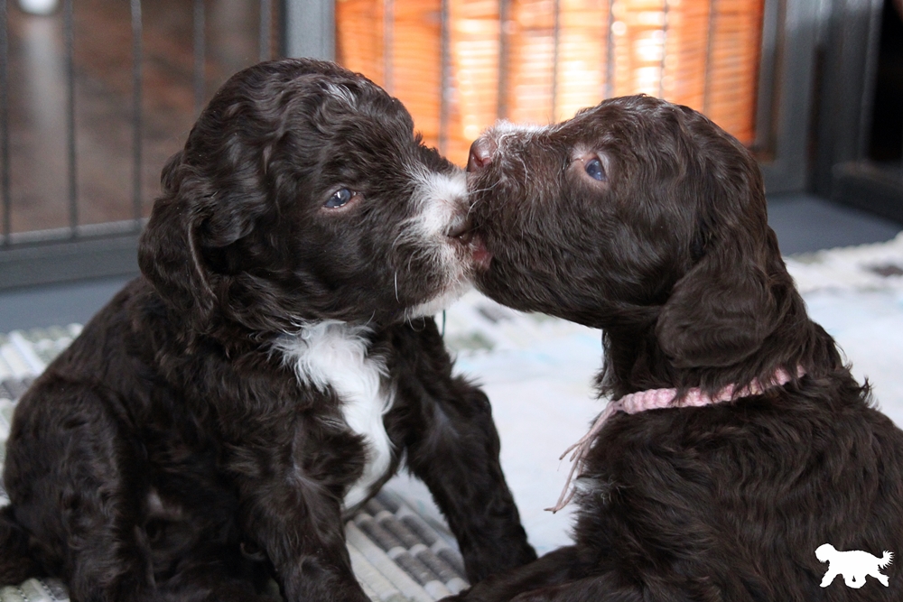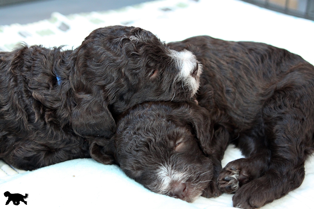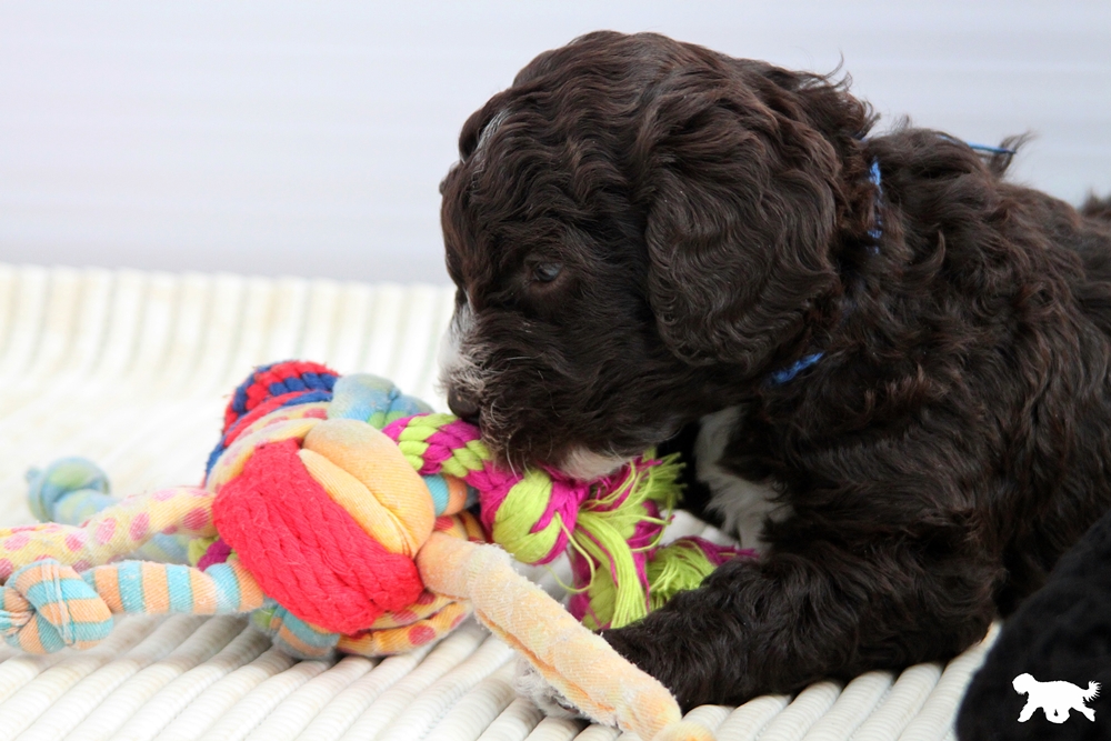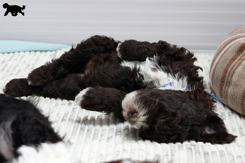 Zondag was het Spirou’s (Nuphar’s What’s Up) beurt om langs te komen om zijn puppy-coupe te laten transformeren. Dolce en Liva waren er ook tot na de lunch, dus veel lol en spelplezier voor de pups.