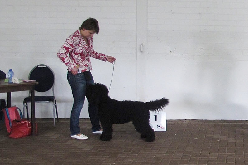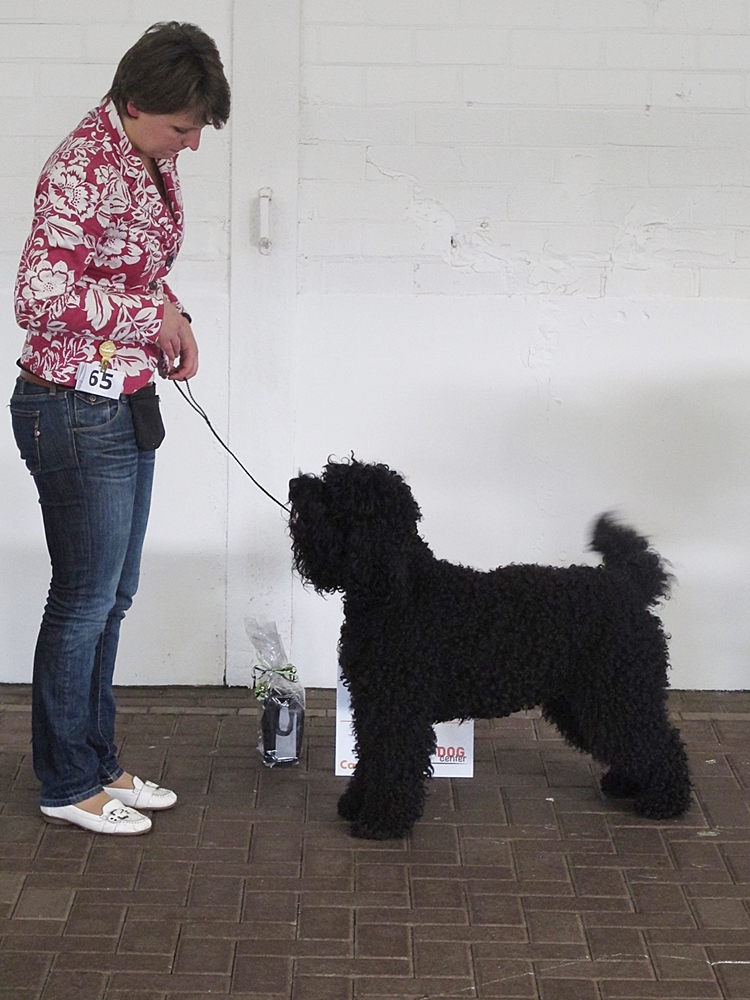 Na de pups was het tijd voor Mexx en Tux, beiden in de Tussenklasse. Mexx stond in een klasse van 3. De keurmeester vond haar vacht ‘te wavy’ ofwel te weinig krullend en onder andere daarom kreeg ze een Zeer Goed, waarmee ze uiteindelijk 2e in haar klasse werd.