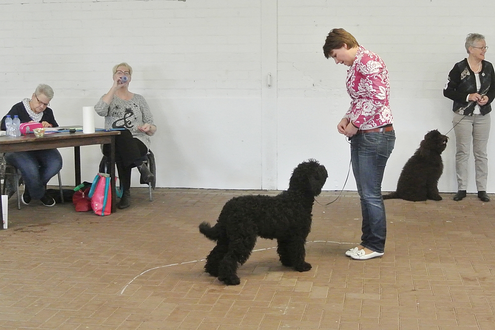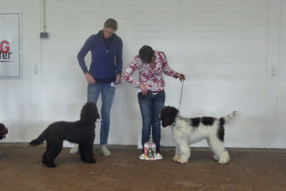 Dit jaar voor het eerst zelfs 2 keurmeesters en dus ook 2 ringen. De keurmeesters waren mevrouw G. Halff-van Boven (zeer ervaren keurmeester die ons ras al jaren keurt en ze was zelfs onderdeel van de examencommissie voor nieuwe keurmeesters) en mevrouw A. Straaijer (nog maar kort geleden benoemd voor ons ras, maar na een zeer gedegen opleiding en als keurmeester geen nieuwkomer, aangezien ze al meer rassen mag keuren inclusief andere waterhonden).