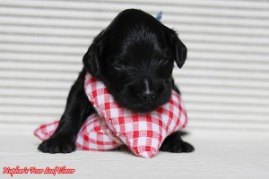 Thibault werd als 6e pup geboren in Alba’s eerste nest. Hij was erg klein bij de geboorte maar vanaf het begin levendig en deed nooit onder voor de grotere pups. Tegen de tijd dat hij naar zijn nieuwe huis ging, was hij allang niet meer de lichtste van het stel.